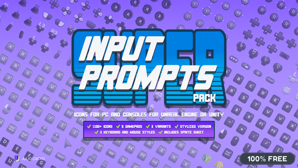 Elevate your game design with this FREE input prompt icon pack, featuring over 1100 high-quality icons perfect for PC and console games. Whether you're working with Unreal Engine, Unity, or Godot, these icons are designed to seamlessly integrate into your project and enhance your user interface.